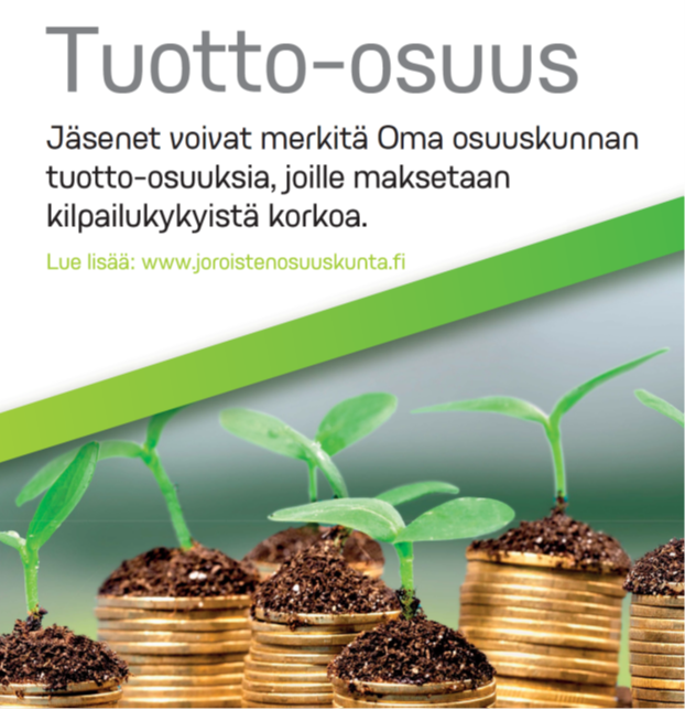 Osuuskunta ei kuitenkaan voi luvata etukäteen maksettavaksi tiettyä korkoa eikä osuuskunnan jäsenosuuteen, lisäosuuteen taikka tuotto-osuuteen sijoitettu pääoma ole pääomaturvattu elikkä jäsen-, lisä- ja tuotto-osuuteen liittyy riski sekä tuoton että pääoman menettämisestä.